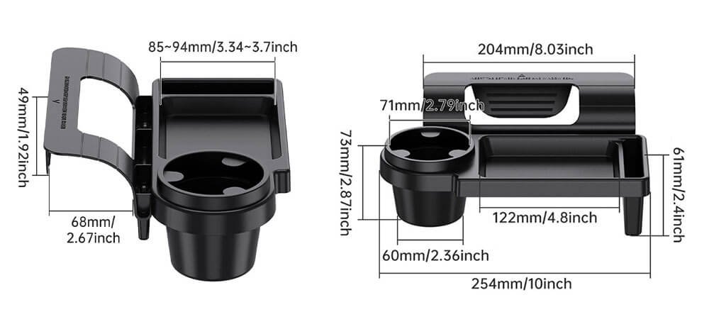 • تصميم 3 في 1 — حامل كوب + درج تخزين + حامل هاتف